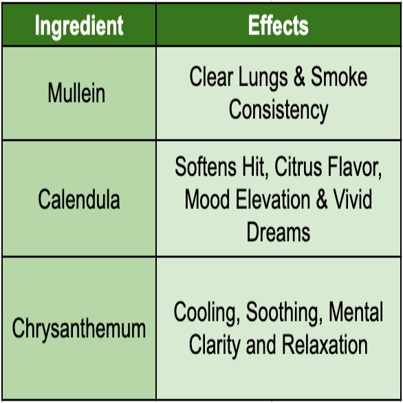 - Ingredients: Mullein, Chrysanthemum, Calendula